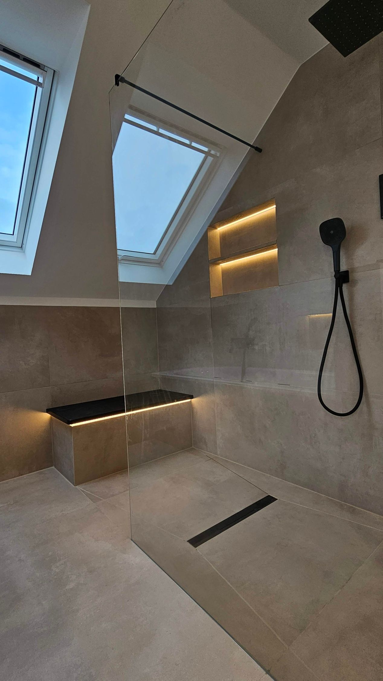 Exklusive Oberflächen: Meisterhafte Verlegung von Fliesen, Naturstein oder die Gestaltung fugenloser Bäder.